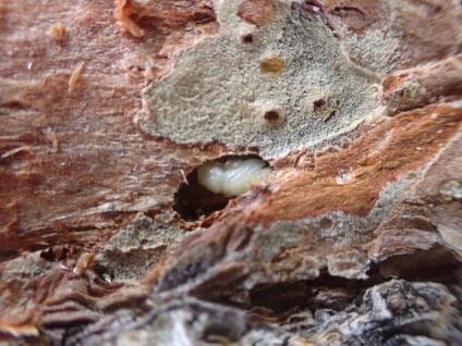 Photo from United States Forest Service of a mountain pine beetle larvae. Click here to read about efforts to curb the power of these tiny morethan human beings.